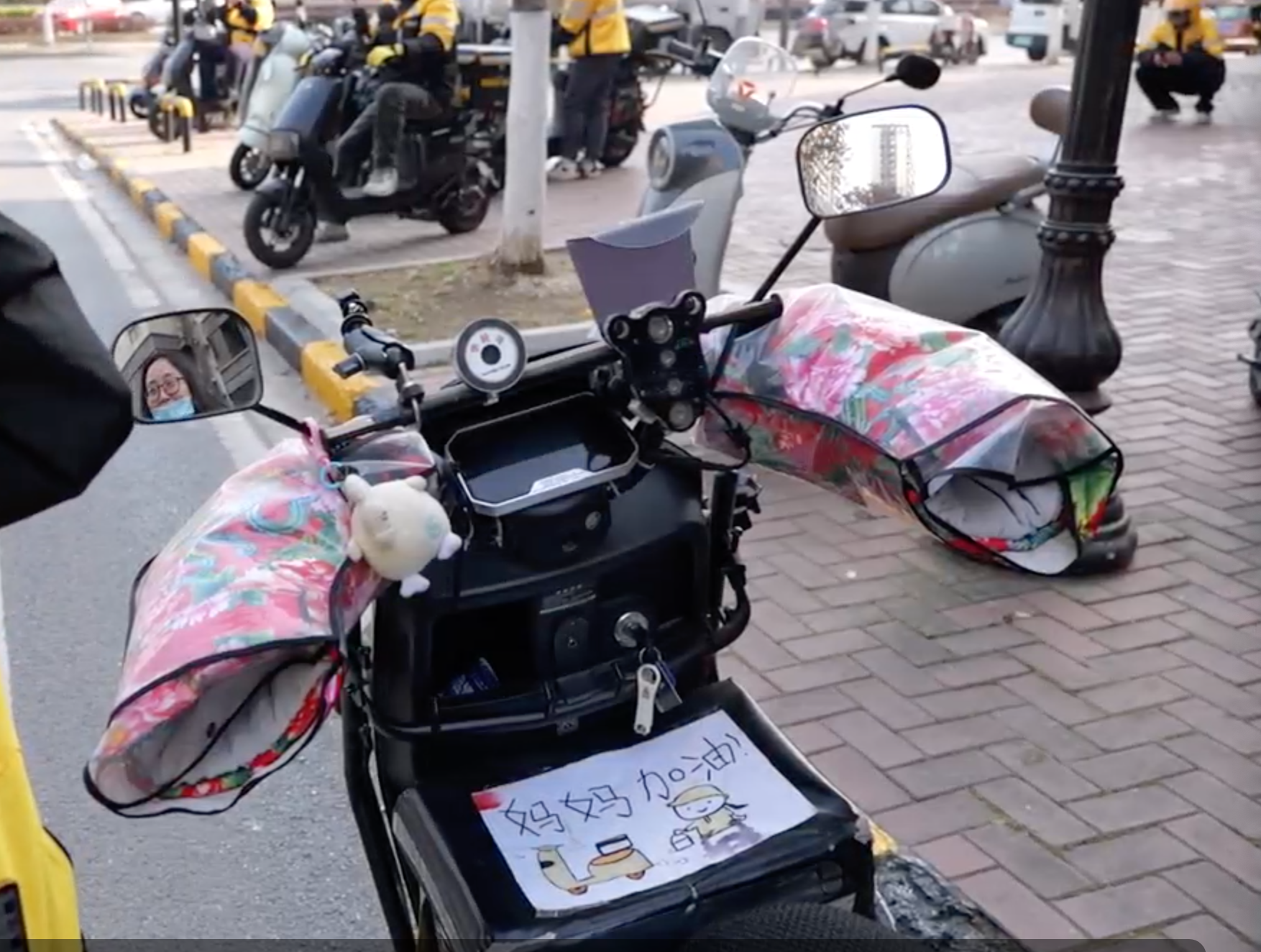 “我问过领导,如果过两年想离职,回老家工作,补贴的钱能不能取出使用?答案是肯定的,这样就也解除了我们的后顾之忧。”陈丽对记者指指自己电动车外卖箱上贴的一幅儿童画,画的正是一个骑手正在送快递的场景。“两个孩子很懂事,我也不想缺席他们的成长!”
