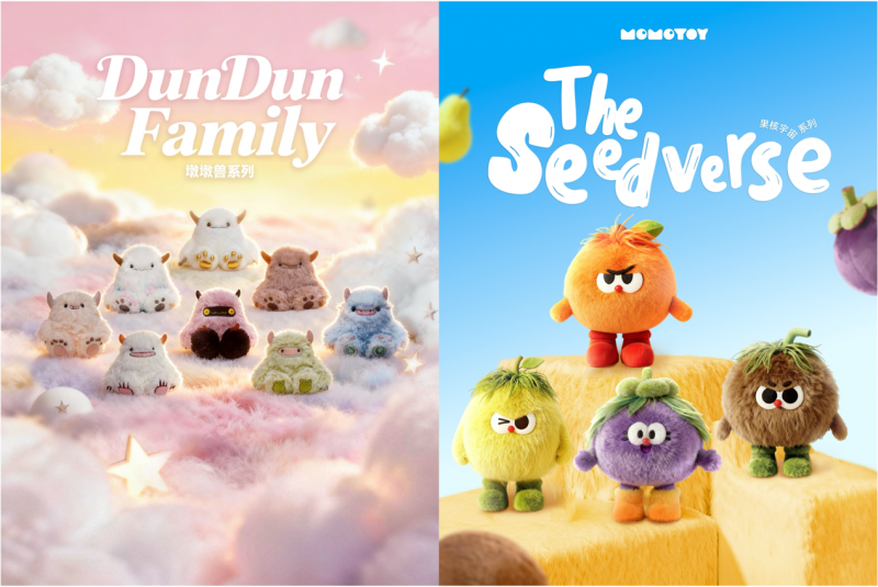 在IP布局上,MOMOTOY明确了自有IP与签约IP并行的核心路径。自有IP方面,如墩墩兽、果核宇宙等IP,均出自MOMOTOY专属设计师之手,承载着品牌原生的情感表达与创意内核;签约IP方面,品牌计划通过签约艺人、二次元创作者、影视机构,以及联动博物馆、文化馆等文化单位,与名人名家及专业机构共创IP内容,形成IP生态的双向赋能。MOMOTOY组建了来自清华美院、中央圣马丁等顶尖艺术院校的新锐设计师团队,构建了从经典盲盒、艺术摆件到限量联名款、数字潮玩周边的立体产品矩阵,成为精准狙击年轻人心灵的战队。
