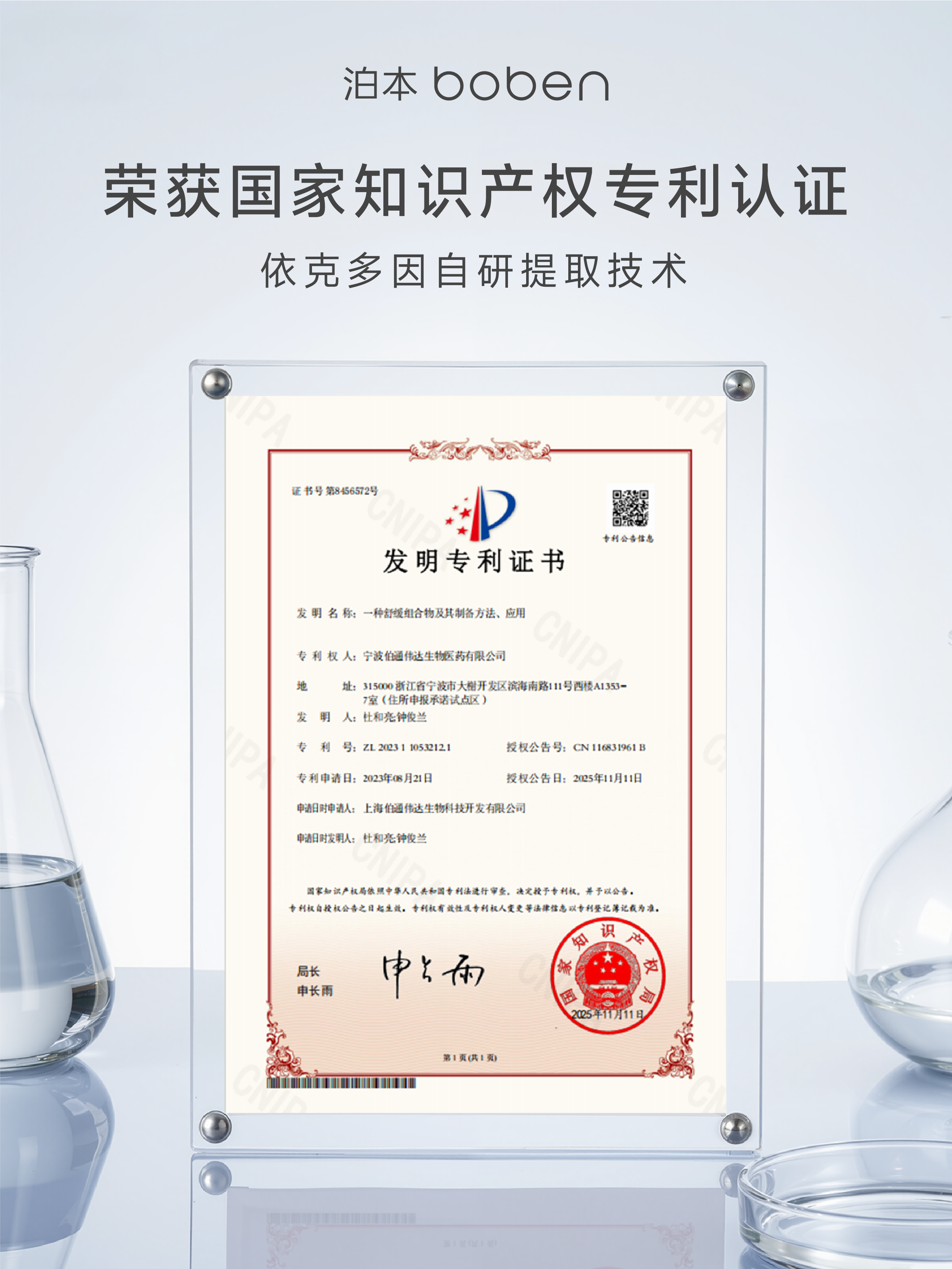 泊本相信,一切科研的终点,都应是给予用户安心的承诺。这张专利证书是一个全新的起点,它昭示着泊本将持续以严谨的科学态度和研发投入,推动敏感肌护理迈向更精准、更有效的未来。在泊本的科研视野里,真正的行业引领,始于对肌肤需求的深切共情,成于经得起国家认证与功效实证的硬核实力。
