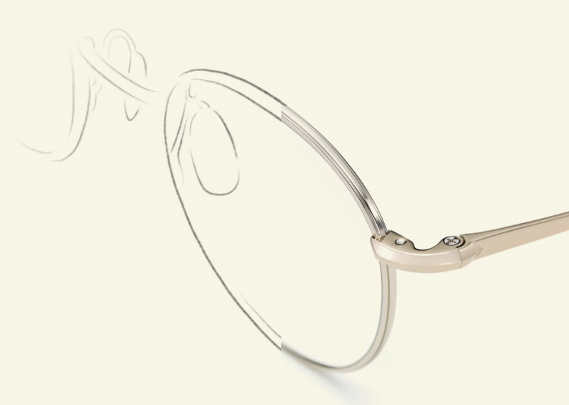 斯巴达铰链:此一体式铰链连接钛金属镜框与镜腿,巧妙利用β钛的弹性特质,能自然适配各种脸型,实现轻盈贴合的佩戴体验。