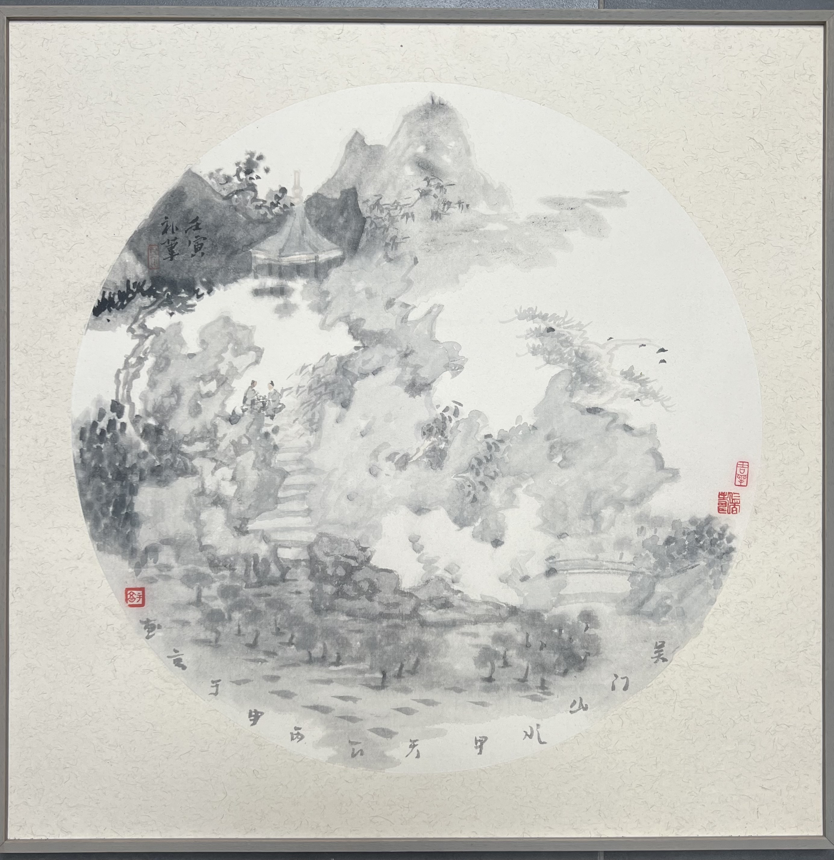 这不禁让人发出赞叹,真是与“务必使游览者无论站在哪个点上,眼前总是一幅完美的图画”的设计理念,有着一脉相承的呼应。的确,中国山水画是中国人情思中最为厚重的沉淀。历代画家一直在“山”“水”两条轴线上孜孜探求,努力追寻山的高、水的阔,并不断赋予其新的意境、新的格调和新的气韵。