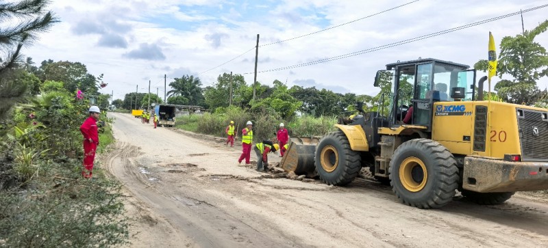 4号国道恩戈尤段作为连接黑角市区与杰诺原油处理厂的交通要道,承载着当地居民出行及物资运输的重要功能。因年久失修,路面布满大量坑洞,严重影响通行安全与效率,给沿线民众和企业生产生活带来极大不便。为解决这一民生难题,2025年11月3日,黑角市长正式致函永华公司,恳请协助修复道路。这已是永华公司连续第二年应黑角市政府请求对黑角市相关国道进行维修保养。在收到政府来函后,永华公司高度重视、迅速响应,调配充足人力与专业设备,制定详细施工方案,并主动承担了全部工程费用,确保项目顺利启动。