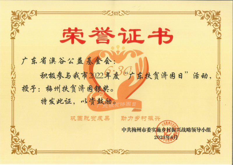 在播种爱心的过程中,阿道夫集团也收获了一个个沉甸甸的公益荣誉和奖牌,例如白云区慈善突出贡献单位、广东扶贫济困红棉杯铜杯、梅州扶贫济困奖银奖、兴宁市扶贫济困奖金奖、大爱同行慈善基金慈善个人铜奖、第十届慈善家等等。