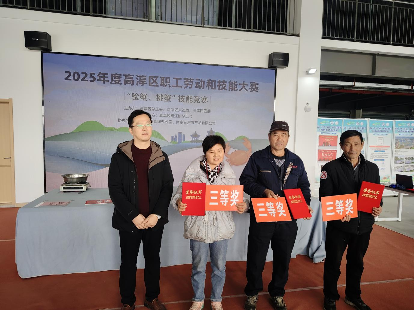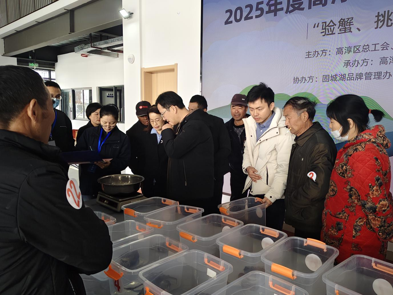 为深入推动高淳区螃蟹产业高质量发展,充分展现全区技能劳动者的精湛技艺与精神风采,12月12日上午,2025年度高淳区职工劳动和技能大赛验蟹挑蟹技能竞赛在阳江镇顺利举办。本次竞赛由高淳区总工会、区人力资源和社会保障局、共青团高淳区委联合主办,阳江镇总工会承办,固城湖品牌管理办公室、南京良庄农产品有限公司共同协办,为全区螃蟹产业技能人才搭建了交流竞技、展示风采的优质平台。