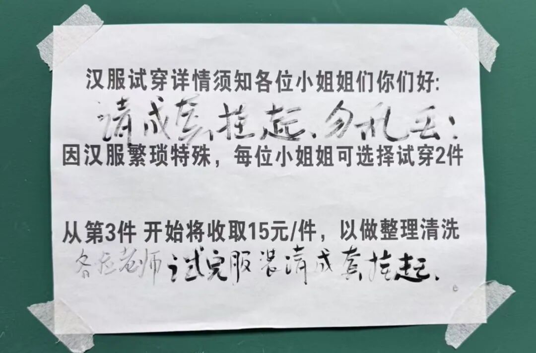 体验发现,部分商家对于收费项目公示或告知不够清晰全面,个别商家存在“隐性消费”问题。例如,江苏苏州某写真馆客服提供的宣传单页宣称“服装上百套全场任选 无任何限制 无任何隐性消费”。但体验员到店却发现店铺张贴告示称,消费者只能享受(免费)试穿2件汉服的待遇,从第3件起就要加收15元/件的“整理清洗”费;浙江绍兴某旅拍店在体验员现场咨询线上团购套餐是否含所有项目时,工作人员直接回复睫毛需额外付费。体验员在套餐外支付30元加购假睫毛后,又得知原来的套餐其实含一副上睫毛,只是“不怎么翘”,但工作人员未提前告知。