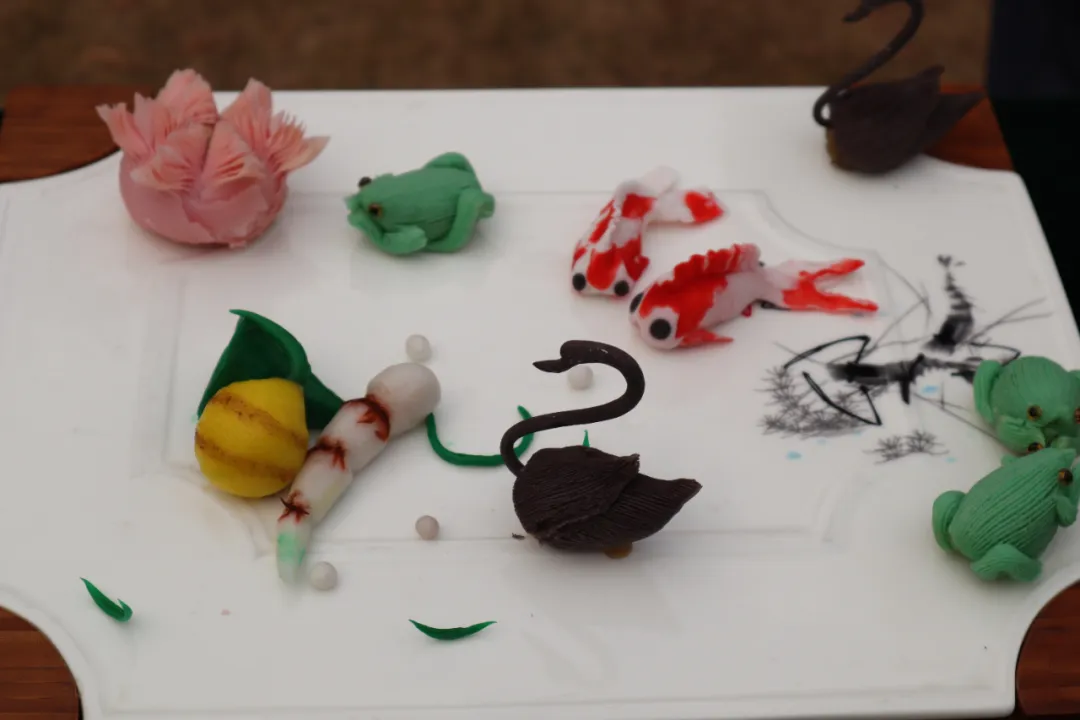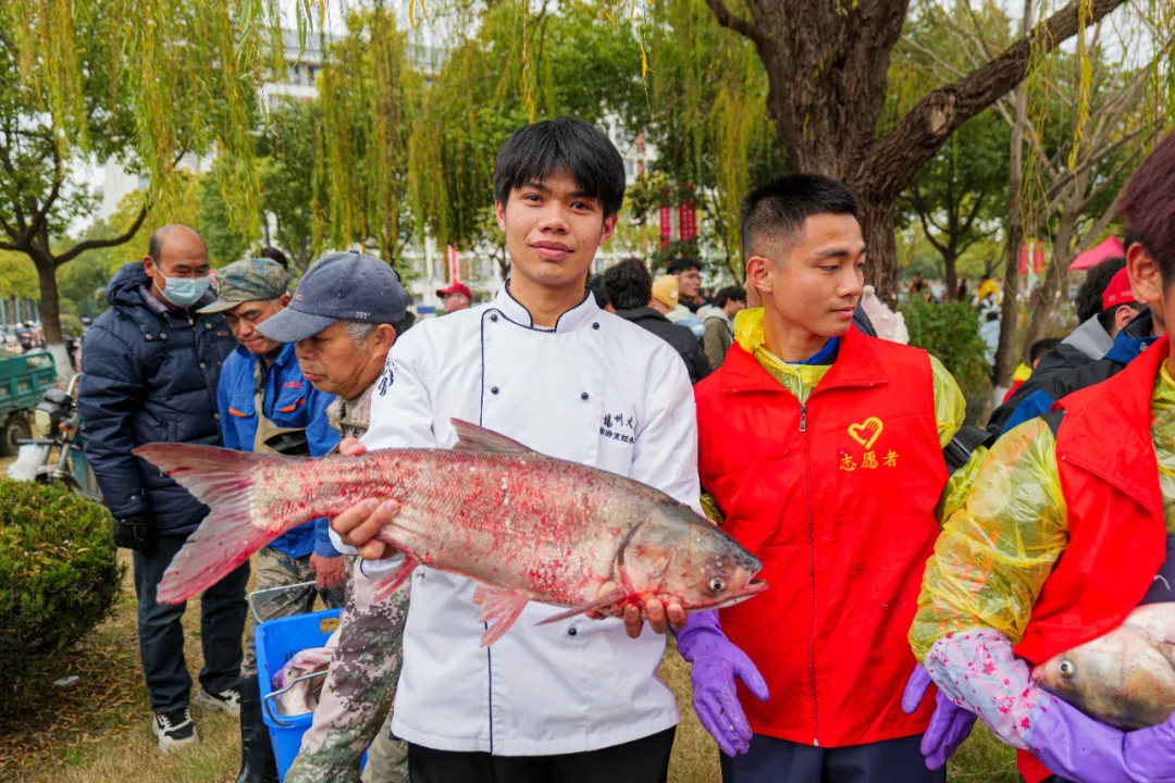 岸边的热闹比湖中更甚。烹饪专业学子的长桌前,琉璃珊瑚鱼参晶莹剔透,金蕊牡丹鱼含苞待放,刚从湖里起网的鲜鱼,转眼就变成了餐桌上的创意佳肴;后勤工作人员支起的大铁锅冒着腾腾热气,姜片与葱段在沸水中翻滚,奶白色的鱼汤咕嘟作响,香气顺着风飘向校园的每个角落。