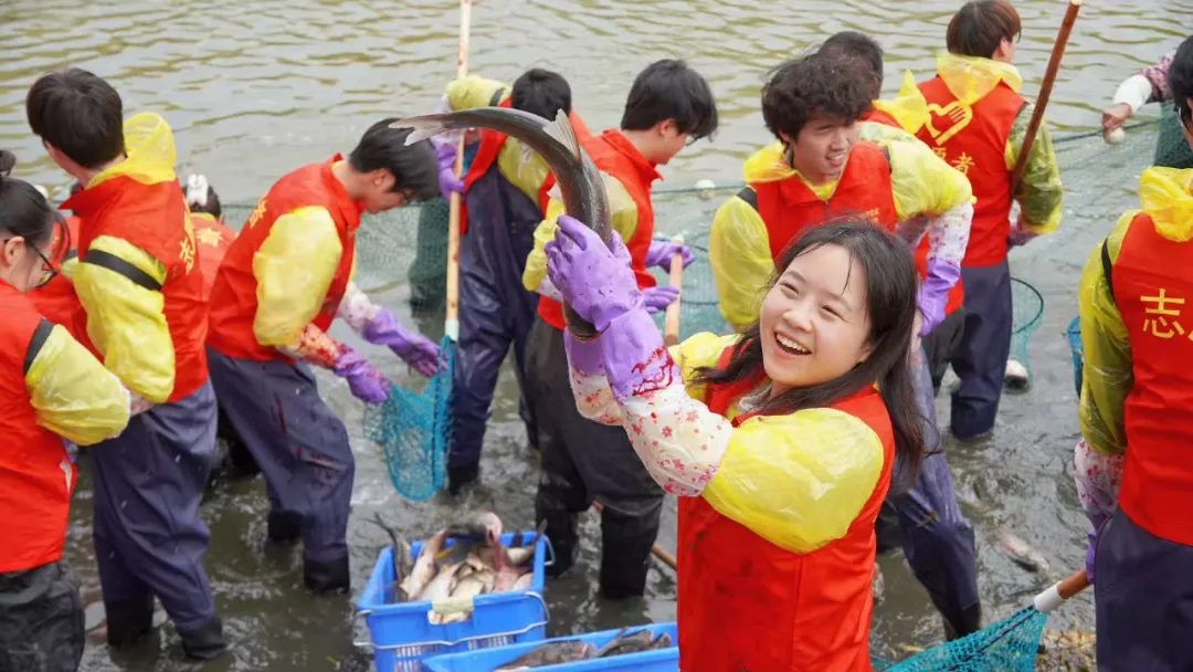 与此同时,新闻传媒专业学生举着相机记录瞬间,数学科学学院学生忙着统计渔获、投放小鱼苗,各专业学子在跨界协作中,让知识与技能在实践中融会贯通。