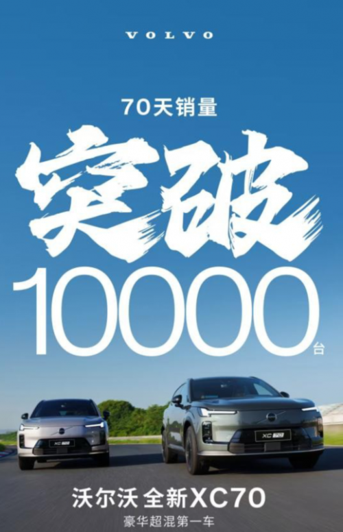 而支撑沃尔沃整体销量结构跃升的核心动力,正是全新 XC70 的迅猛爆发。12 月 5 日,沃尔沃全新 XC70 累计销量正式突破 10,000 辆!自 9 月 26 日上市以来仅用 70 天完成这一里程碑,实现真正意义的“上市即爆款”。作为豪华中大型混动 SUV 市场的新玩家,XC70 的破万不仅象征着开局成功,更意味着它真正撞上了用户的真实需求点。作为“全能型豪华混动车”,XC70 的市场热度也在验证它被越来越多消费者视为“豪华超混第一车”的实力。