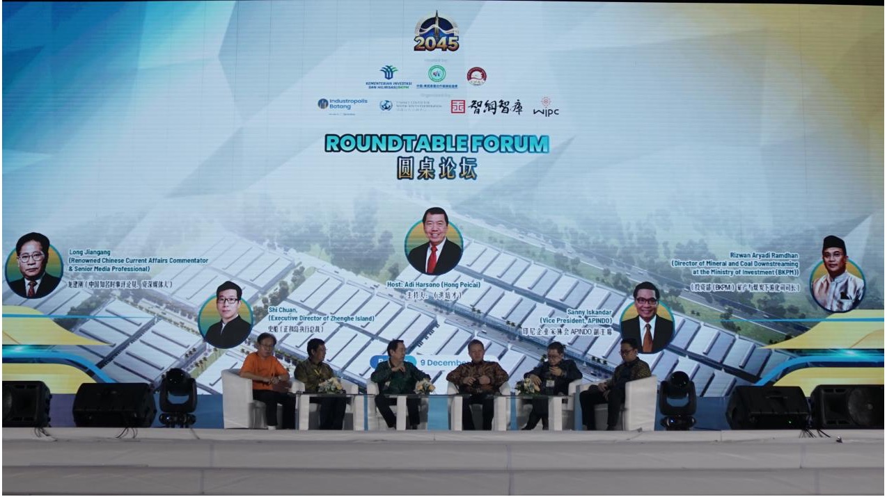 随后的圆桌论坛环节由印尼-中国经济、社会与文化合作协会副总主席、印度尼西亚企业家协会亚太区域合作委员会主席、上海印尼商会会长 Adi Harsono洪培才先生主持,邀请到了中国知名时事评论员、资深媒体人龙建刚、正和岛执行总裁史船、印尼产业园协会主席Sanny lskandar、投资部(BKPM)矿产与煤炭下游化司司长Rizwan Aryadi Ramdhan、万信达控股董事长陈日铃多位来自不同领域的嘉宾,围绕合作机遇与挑战展开交流,碰撞思想火花。