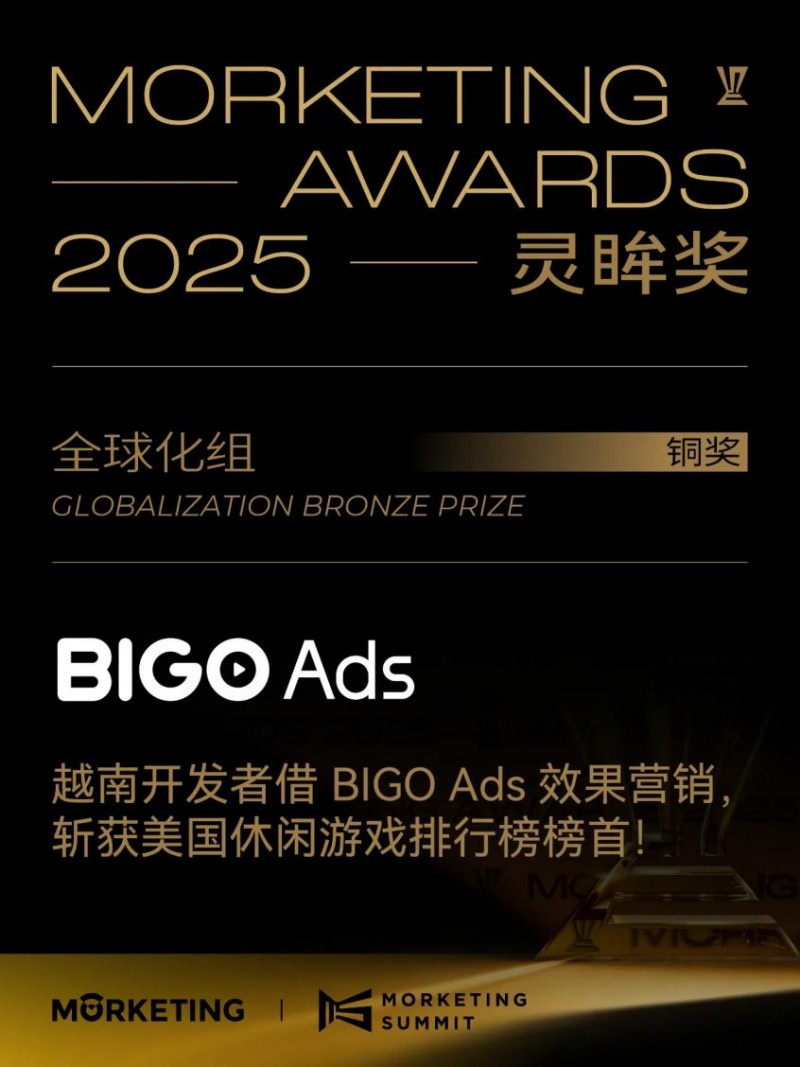 此次荣获灵眸奖全球化组奖项,标志着行业对BIGO Ads技术能力与游戏全球化营销实效成果的进一步认可。未来,BIGO Ads将继续以技术为驱动,赋能开发者拓展全球市场,探索可持续的增长模式。