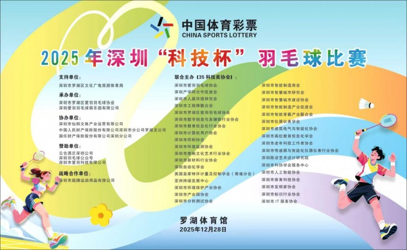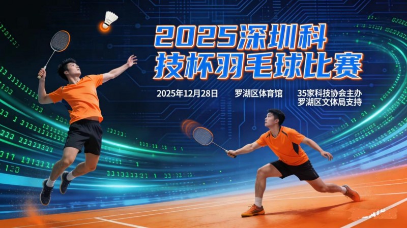 深圳讯 2025年深圳"科技杯"羽毛球比赛将于12月28日在罗湖体育馆举行。这项由深圳市罗湖区文化广电旅游体育局支持、35家科技类协会联合主办的行业体育赛事,现已开启报名通道,吸引华为、海思、腾讯、中海油、中广核等多家知名企业率先组队参赛。