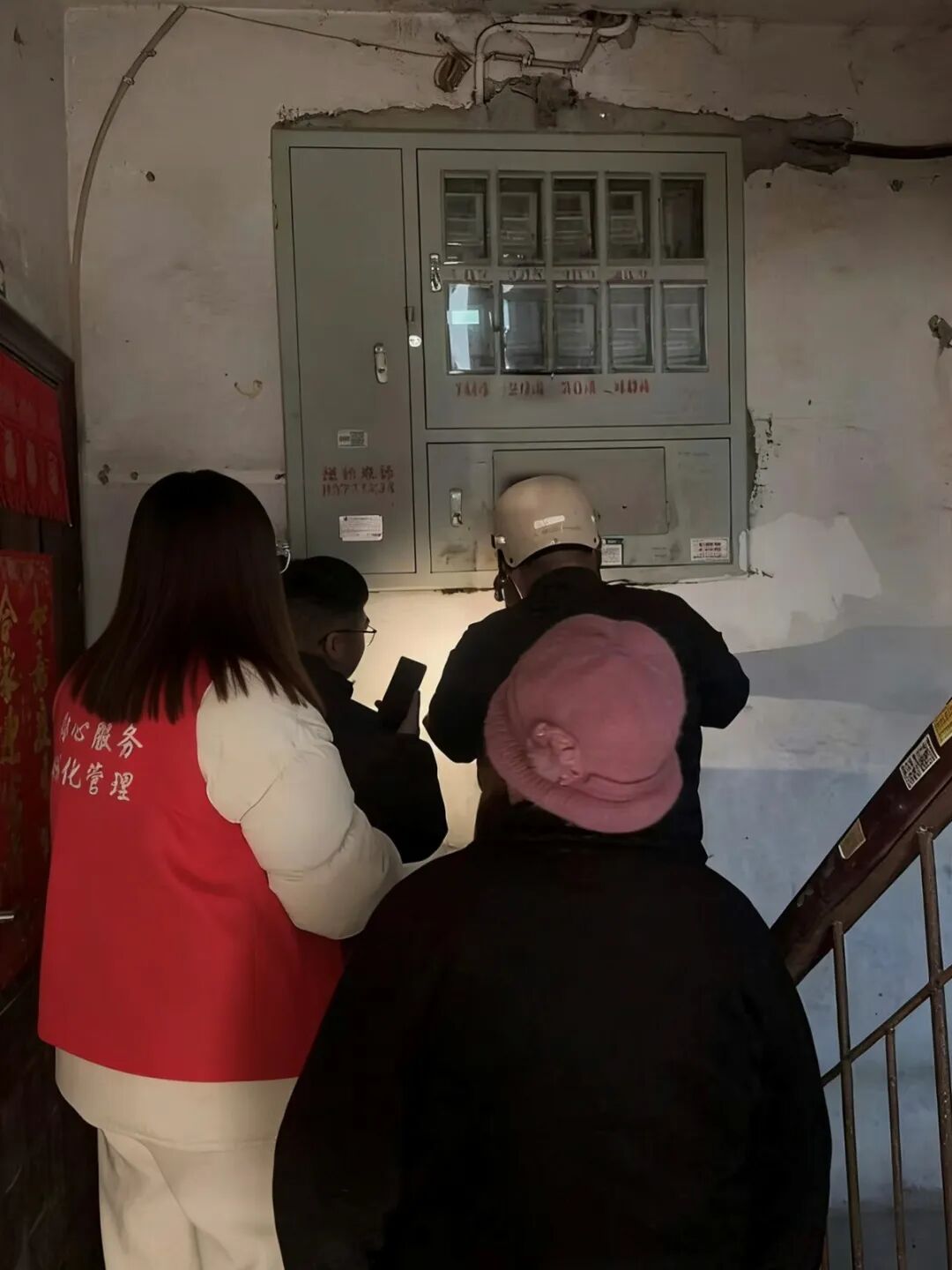 接到居民诉求后,网格员始终把群众急难愁盼放在心上,第一时间赶往现场实地查看,确认楼道灯故障情况后,立刻联系专业电工上门维修。维修过程中,网格员全程在旁协助,提醒过往居民注意安全并配合电工高效推进维修工作。经过15分钟的细致检修与调试,故障楼道灯成功修复,楼道内重新恢复明亮。