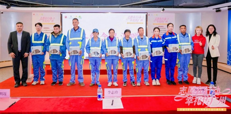 活动现场还向环卫工人代表赠送了暖冬纪念品,聆听他们的公益心愿;向广州市志愿者赠送慰问产品;为各支持单位、协办单位颁发纪念证书,感谢各方携手筑牢公益合力。