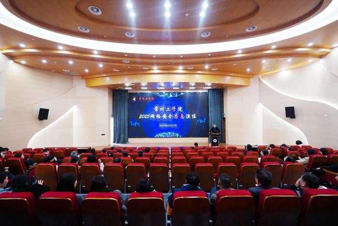 12月11日下午,常州工学院举行2025年网络安全应急演练暨网络安全专题培训会。各单位网络安全责任人、安全员及信息化建设与管理中心全体人员参会。会议由信息化建设与管理中心主任何中胜主持。