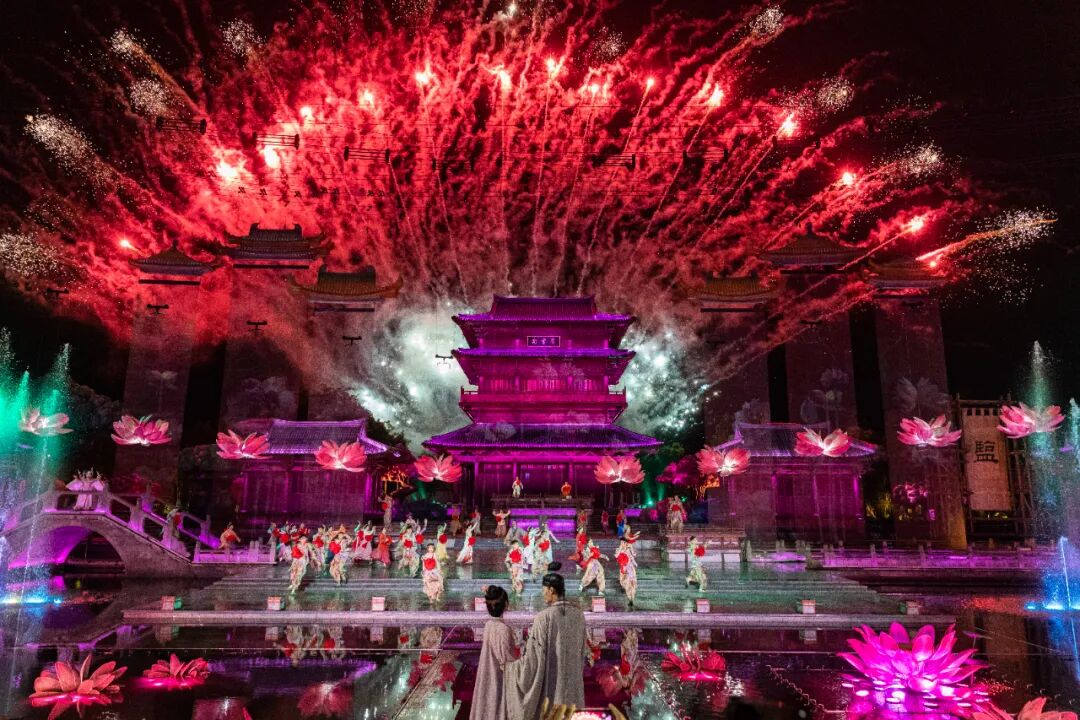 夜间,大型仙幻实景秀《天仙缘》在董永七仙女文化园精彩上演。演出通过灯光、舞美与真人演绎,再现传奇爱情故事,营造沉浸式观演体验。古镇夜景同样迷人,灯火点缀街巷,勾勒出如梦如幻的冬日画卷。