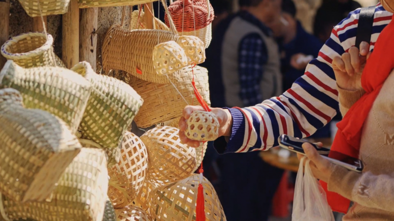 东明村被誉为“梅竹之乡”,拥有千亩梅林和传承四百年的竹编技艺,但由于现代工业的冲击,竹编技术濒临失传。2023年,在项目的支持下,东明村成立了“思远农业专业合作社”,不断提升团队的技艺创新与自主运营能力,成立以来收入累计达到7万元。同时,村庄依托自身特色打造“梅竹东明”文旅IP,2025年吸引游客16万人次。如今,合作社开发的“竹编梅饼”等创新工艺品广受年轻消费者喜爱,竹编研学、围炉煮茶等体验项目成为文旅新亮点,实现了自然梅花景观与非遗竹编技艺的双向赋能。