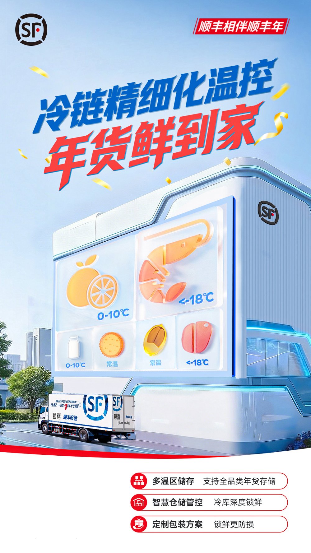 顺丰相伴,年货鲜达。这个春节,顺丰以智慧供应链助力商家“鲜”行一步,守护每一份年味的准时抵达。
