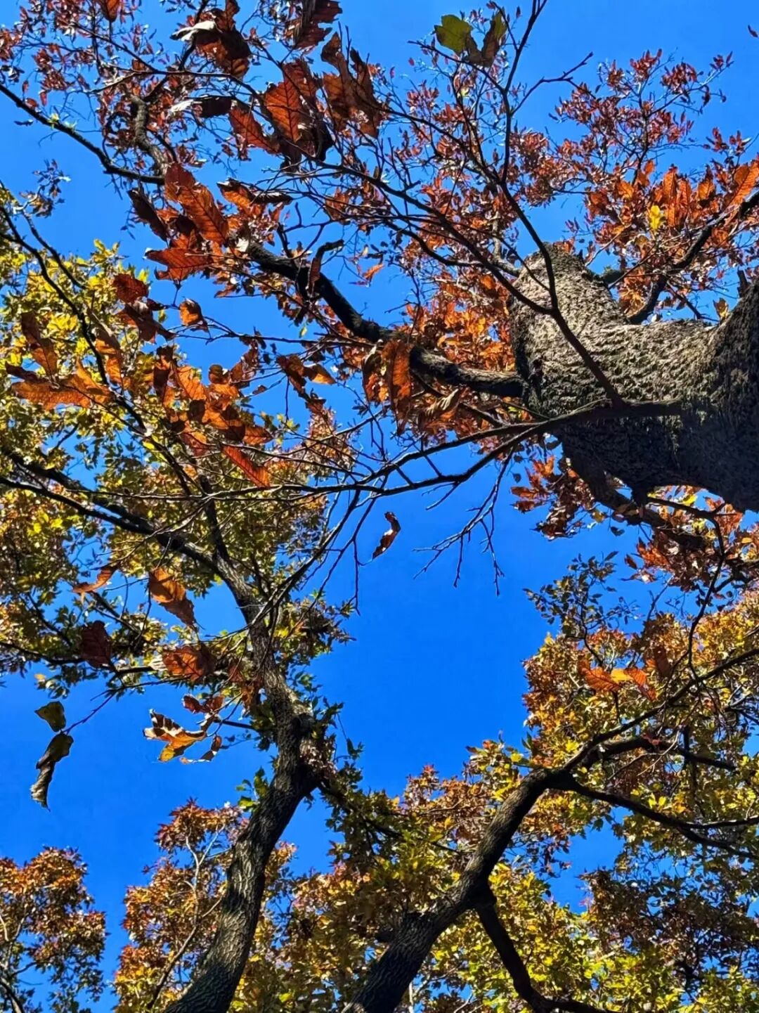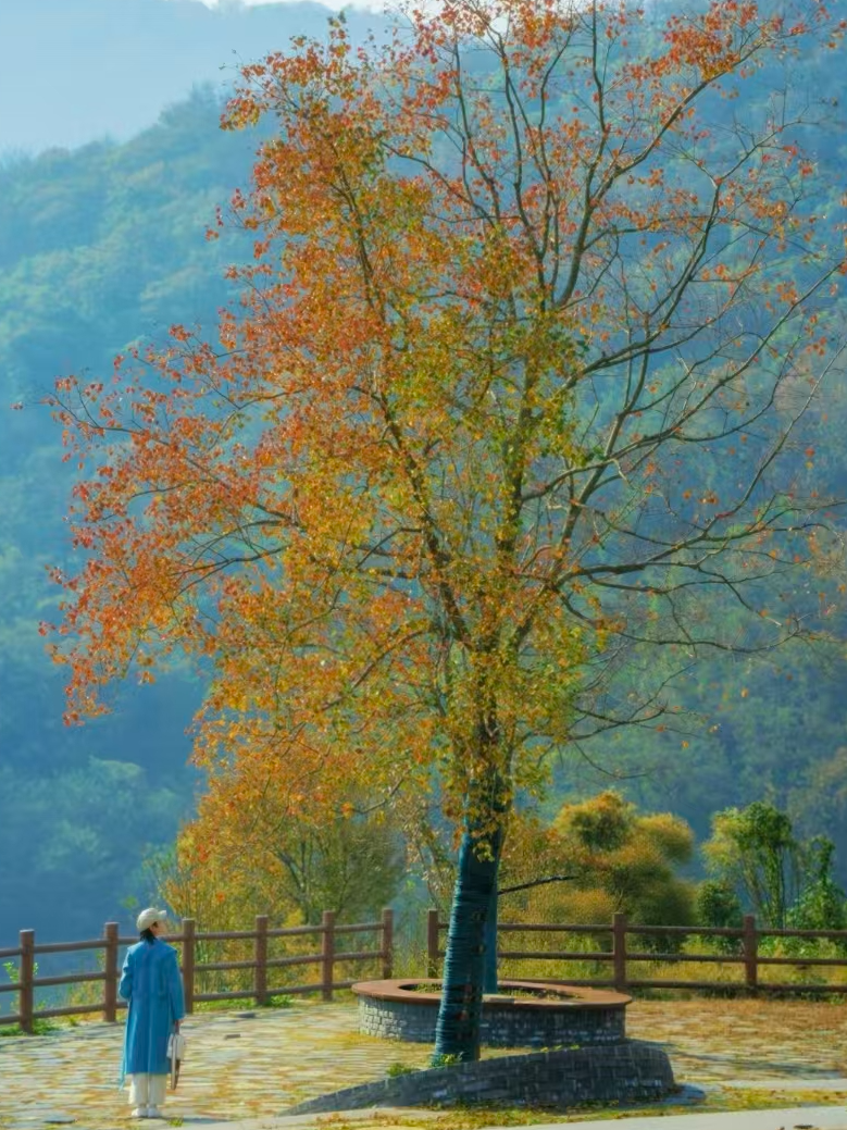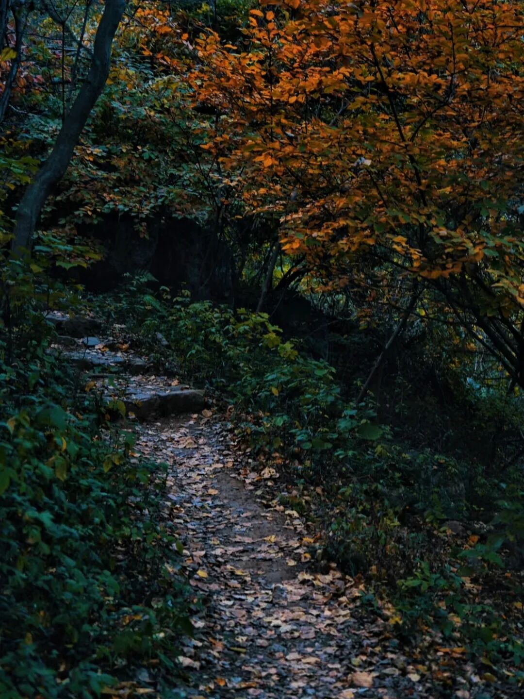 栾叶染黄、乌桕泛红,落叶顺着风轻吻步道,铺成松软的暖调肌理,踩上去沙沙作响,是山野最治愈的私语。阳光穿过枝头,碎金洒在肩头,风里裹着草木的清冽,深吸一口满是纯粹。
