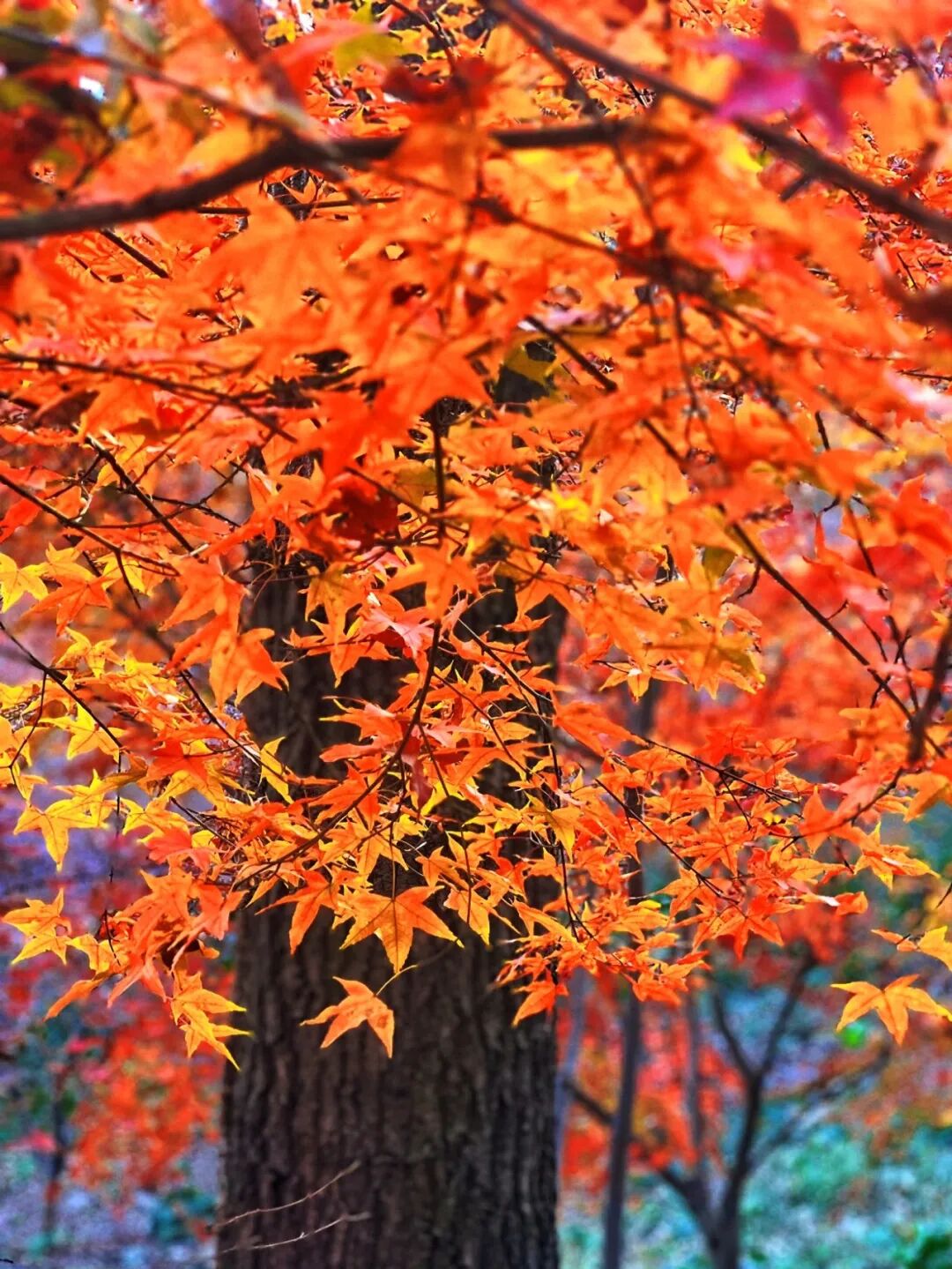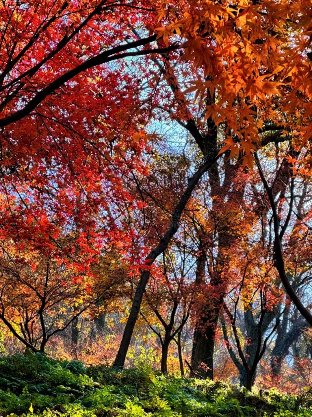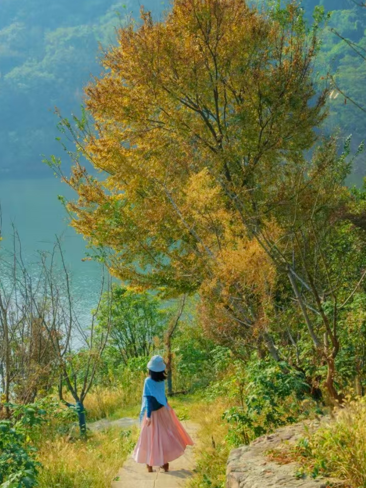 栾叶染黄、乌桕泛红,落叶顺着风轻吻步道,铺成松软的暖调肌理,踩上去沙沙作响,是山野最治愈的私语。阳光穿过枝头,碎金洒在肩头,风里裹着草木的清冽,深吸一口满是纯粹。