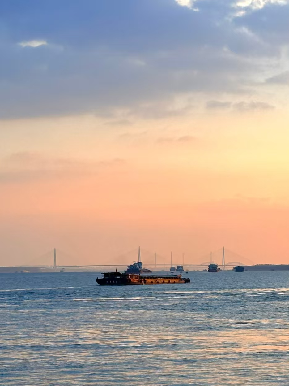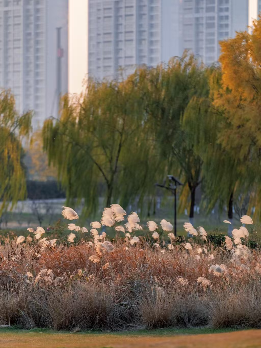 江风褪去燥热,变得温柔和煦。沿步道漫步,看天接江水、云染暮色,所有烦躁都被江风轻轻吹散,只剩满心舒展。公园内的芦苇轻晃,与清透江水相映,飞鸟掠过湖面,听见风拂芦苇的轻响。