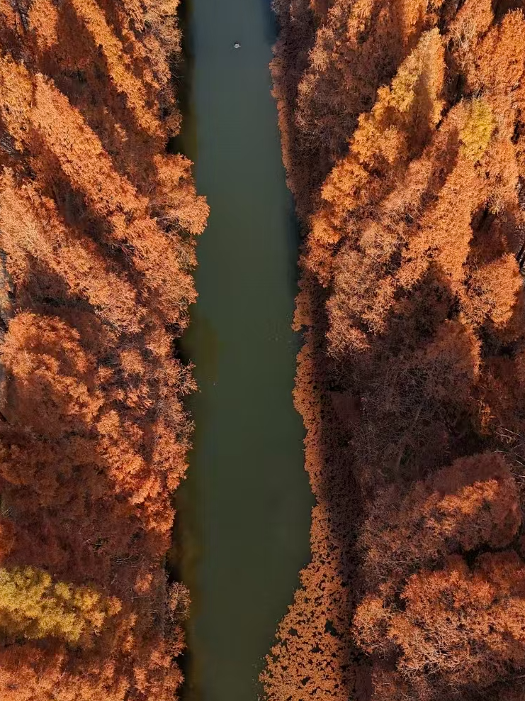 汤泉水杉大道,是江北冬季一道不可错过的风景线。当冬日的阳光穿过水杉林的缝隙,洒下斑驳的光影,你会明白,季节的更替可以如此静美。