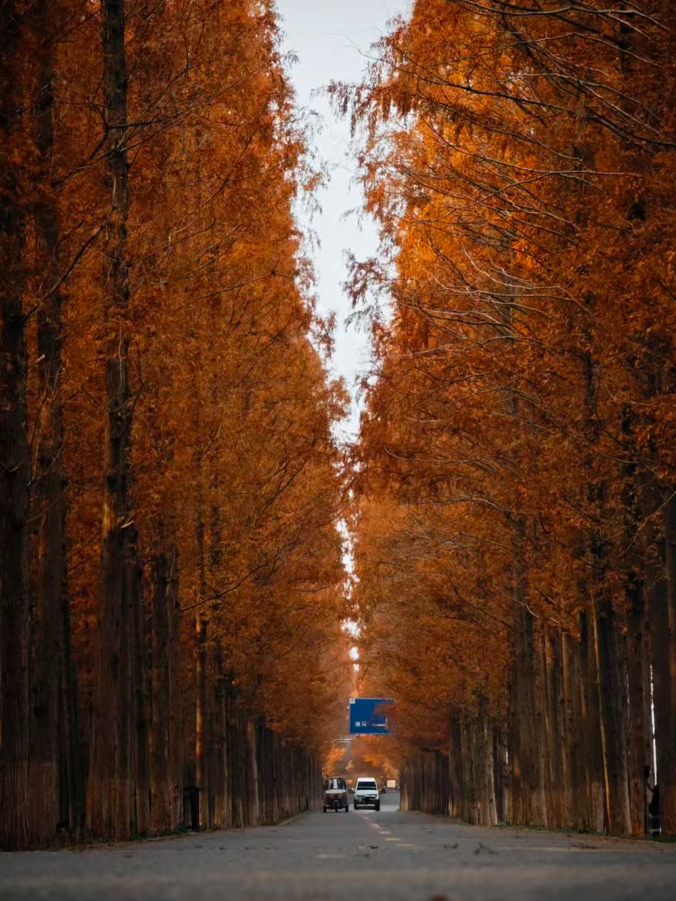 这些挺拔的水杉树在冬季呈现出红、黄、橙等温暖的色彩,整个大道像是被画笔精心描绘过一般,色彩斑斓,美不胜收。漫步其中,踩着沙沙作响的落叶,享受城市中难得的宁静,心灵也随之沉淀下来。