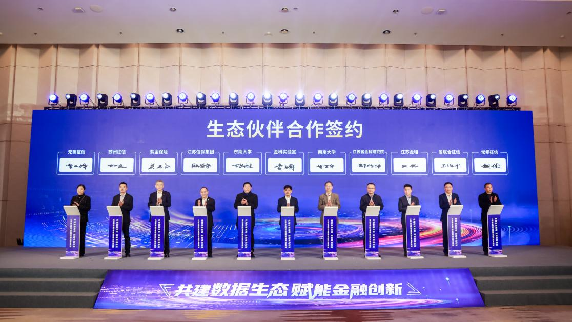 会上,实验室与工行省分行、农行省分行、中行省分行、建行省分行、交行省分行、邮储银行省分行、招商银行南京分行、兴业银行南京分行等银行机构进行合作签约,并与南京大学、东南大学、江苏省金科研究院、江苏信保集团、江苏金租、紫金保险、省联合征信、苏州征信、常州征信、无锡征信等生态伙伴进行合作签约。