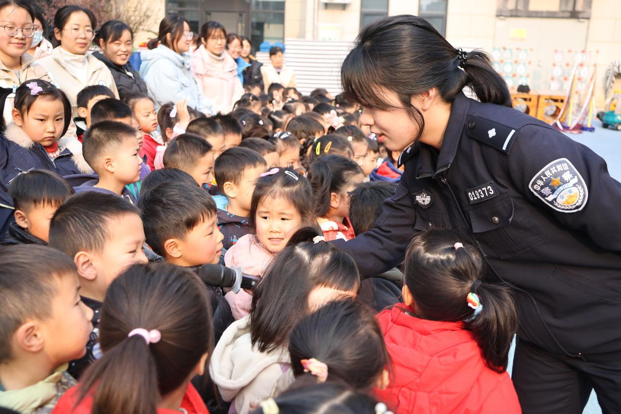 活动现场,民警们精心设计了三个互动环节,让孩子们在轻松愉快的氛围中学习交通安全知识。在交通安全知识讲解与问答环节,民警结合幼儿的认知特点,用通俗易懂的语言讲解过马路、乘车等日常出行的安全注意事项,通过趣味问答的方式,引导孩子们主动思考、积极回应,加深对交通安全知识的理解。