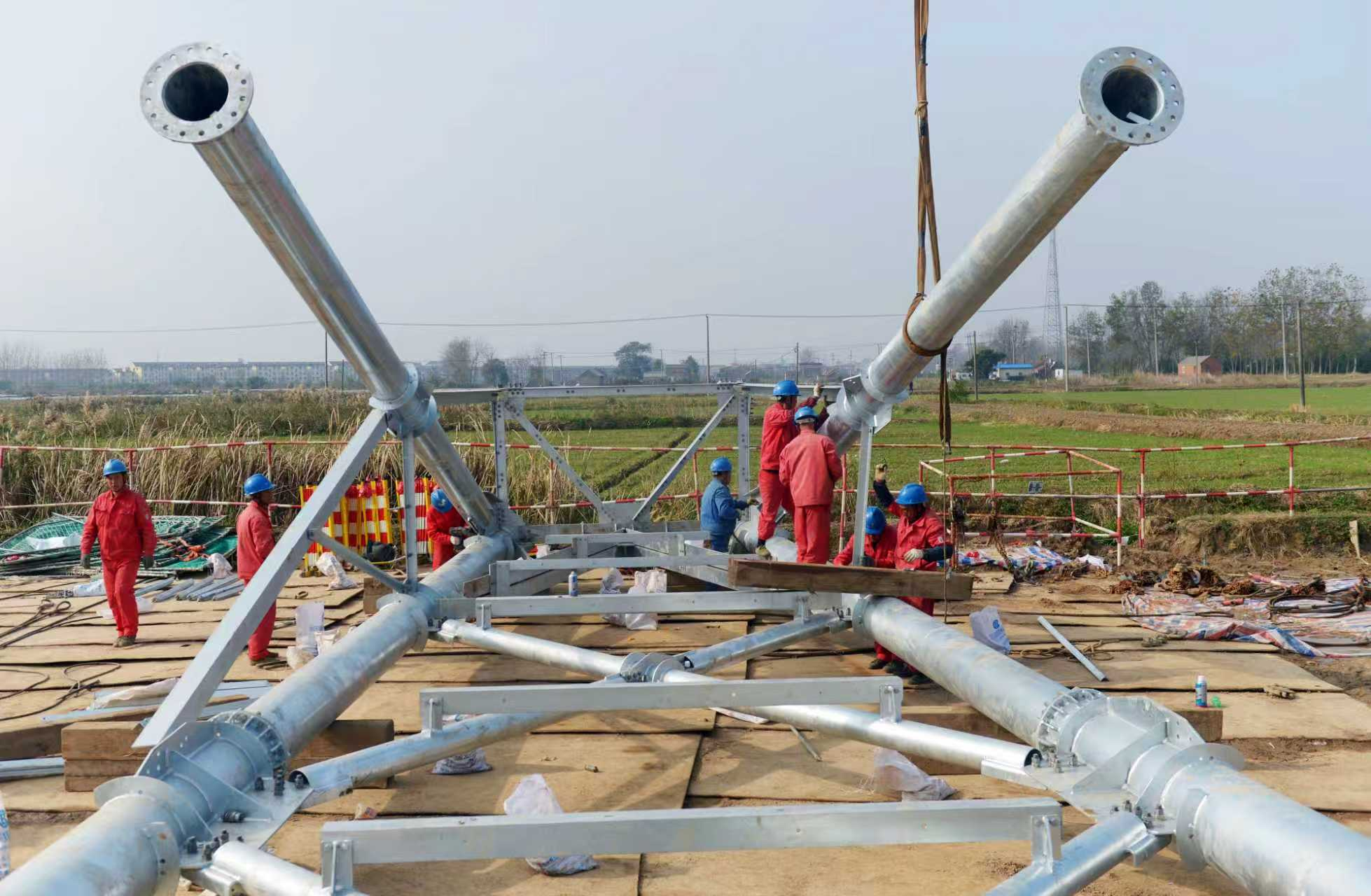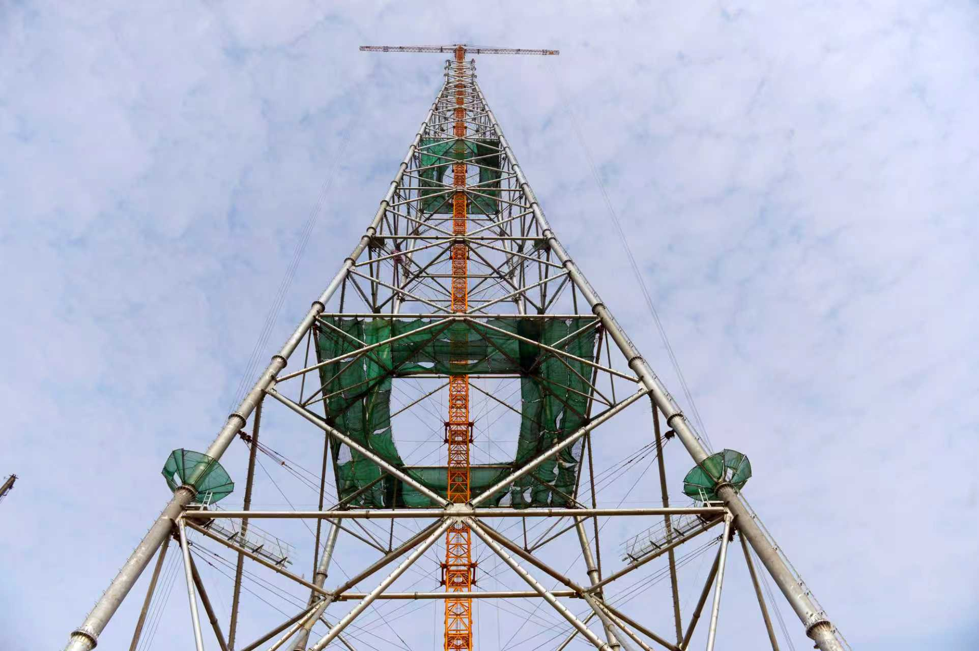 新华报业网讯 11月13日,跨越淮河的500千伏输电工程南侧跨越塔封顶。