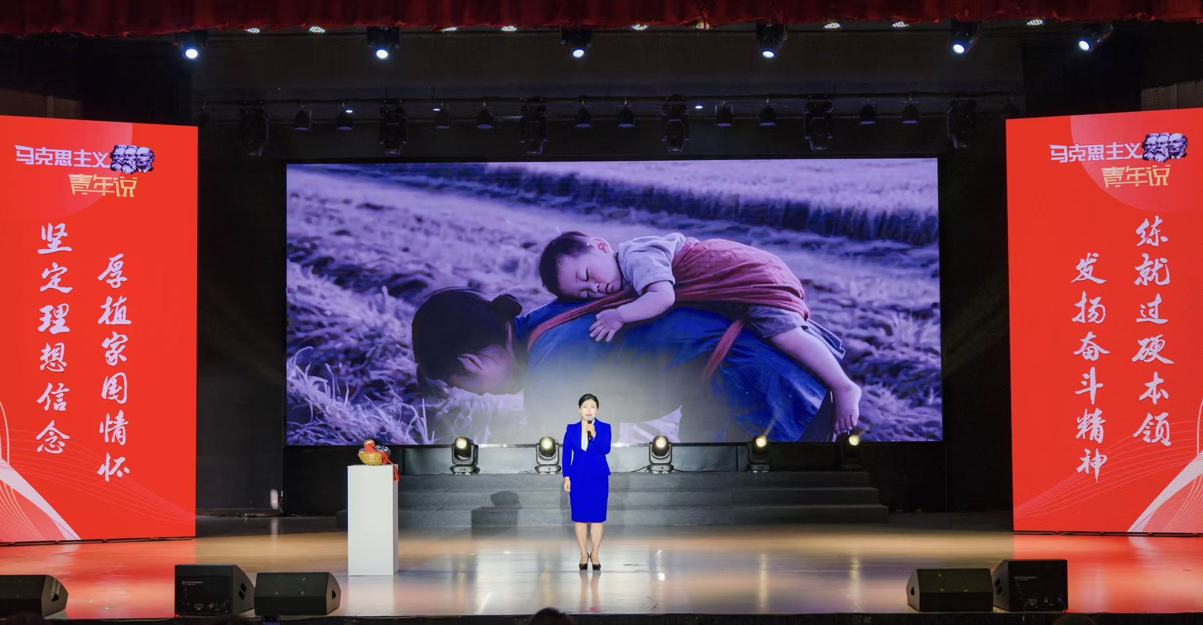 马克思主义不仅是书本上的理论,更是流淌在历史血脉中的精神基因。宿迁学院思政课兼职教师、泗阳县博物馆讲解员、江苏省红色故事宣讲大赛金牌选手刘曼动情讲述《老乡背上的红孩子》,带领同学们走近烽火岁月里,感悟“一根背带”串起的家国大爱、军民深情。