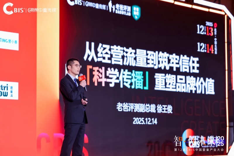 上周末,2025 CBIS中国婴童产业大会在北京举办。大会期间,老爸评测副总裁&GR负责人徐王俊发表题为《经营“流量”转向经营“信任”,如何重塑品牌核心价值》的主题演讲,围绕行业趋势变化与品牌信任建设路径,系统阐述了老爸评测的最新实践与战略思考。