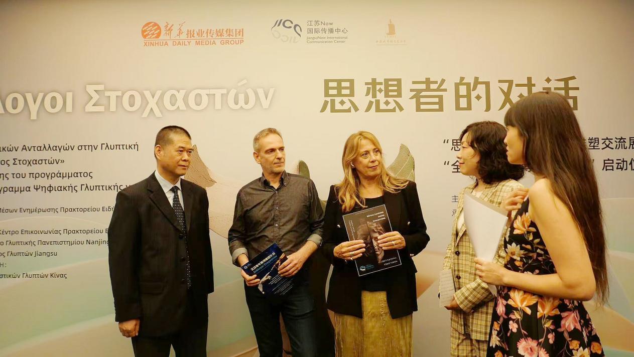 Two weeks later, Chinese media and academia returned to Athens, bringing nine contemporary sculptures from Jiangsu. The "Sculpting Thoughts International Sculpture Exchange and Exhibition and the launch ceremony for the "Global Youth Cyber Sculpture Program" were held there. The program features a dedicated page on JiangsuNow's English website, calling for digital sculpture submissions from young artists worldwide. Upon its announcement, the initiative garnered widespread attention. Ms. Victoria ZYGOUROU, Director of the Municipal Art Gallery, expressed great admiration for China's progress in art digitization and stated she would actively promote the program.