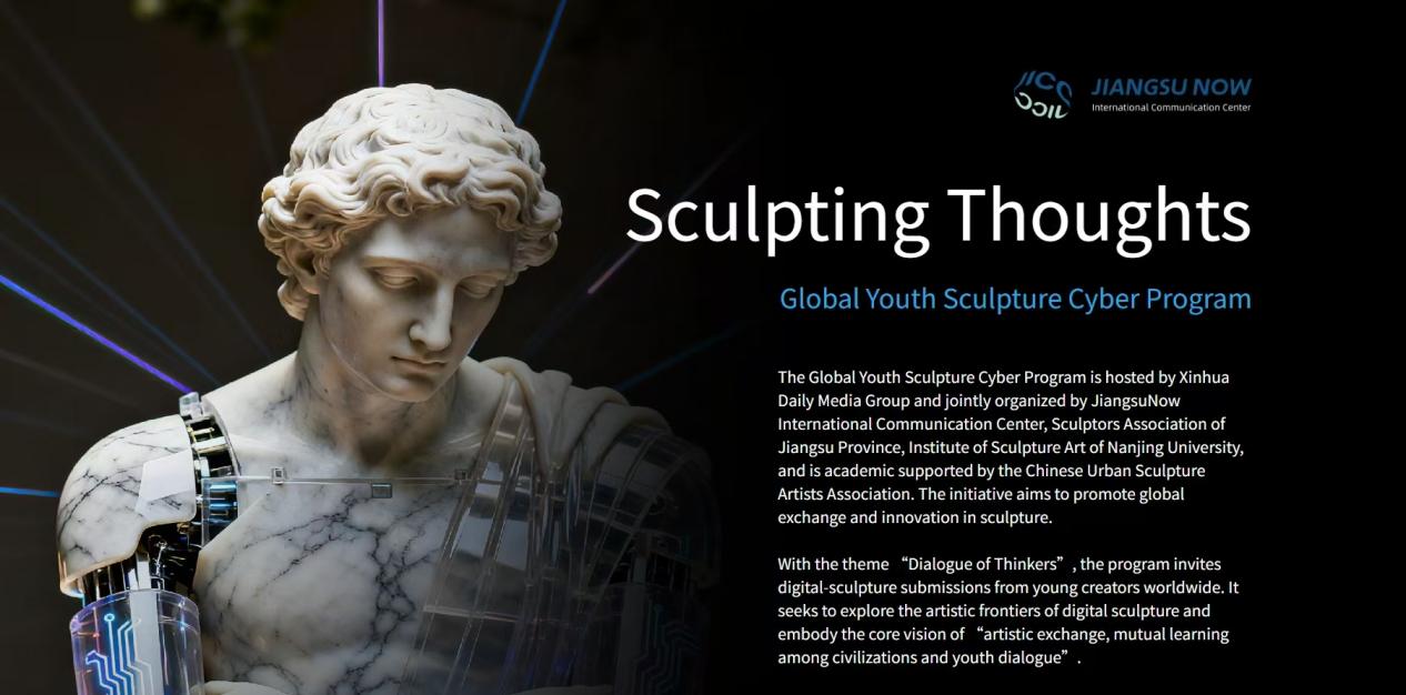 “全球青年赛博雕塑共创计划”在JiangsuNow英文网特别开设专题,面向全球青年艺术家征集“思想者的对话”主题数字雕塑作品,邀请来自不同地区和国家的青年人,用数字雕塑呈现“多元文明如何在承古开今中共生共荣”这一理念。该计划一经发布,就引起了广泛关注。