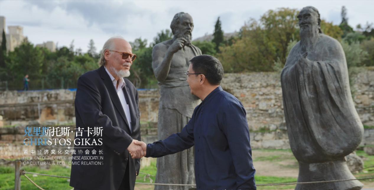 在这里,尚荣遇见了希中经济文化交流协会会长克里斯托斯·吉卡斯。曾四次到访中国敦煌的吉卡斯,凝望着雕塑感慨道:“孔子和苏格拉底生活在同一时代,都对中西方文化产生深远影响。两位伟大的思想家的雕塑在这里‘会面’,他们所代表的中西方的文明也在过去现在和未来不断展开对话。”