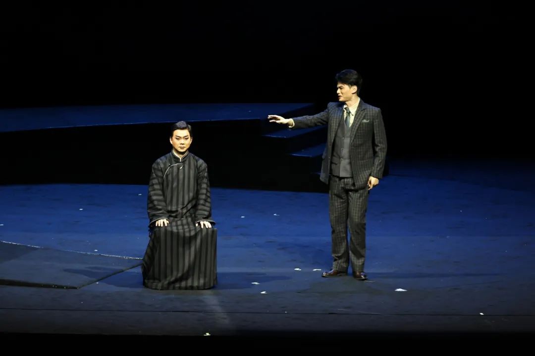 这部戏在舞台视觉语言的构建上,同样展现出了自觉的创新追求。舞台上那个旋转的“金属魔方”,是一个极具象征意义的视觉核心。它的每一次转动,都不仅仅是物理空间的切换,更是时间维度的折叠与心理空间的投射。它让过去与现在得以在同一舞台上并置、对话,实现了戏曲舞台上难得的电影“蒙太奇”效果。