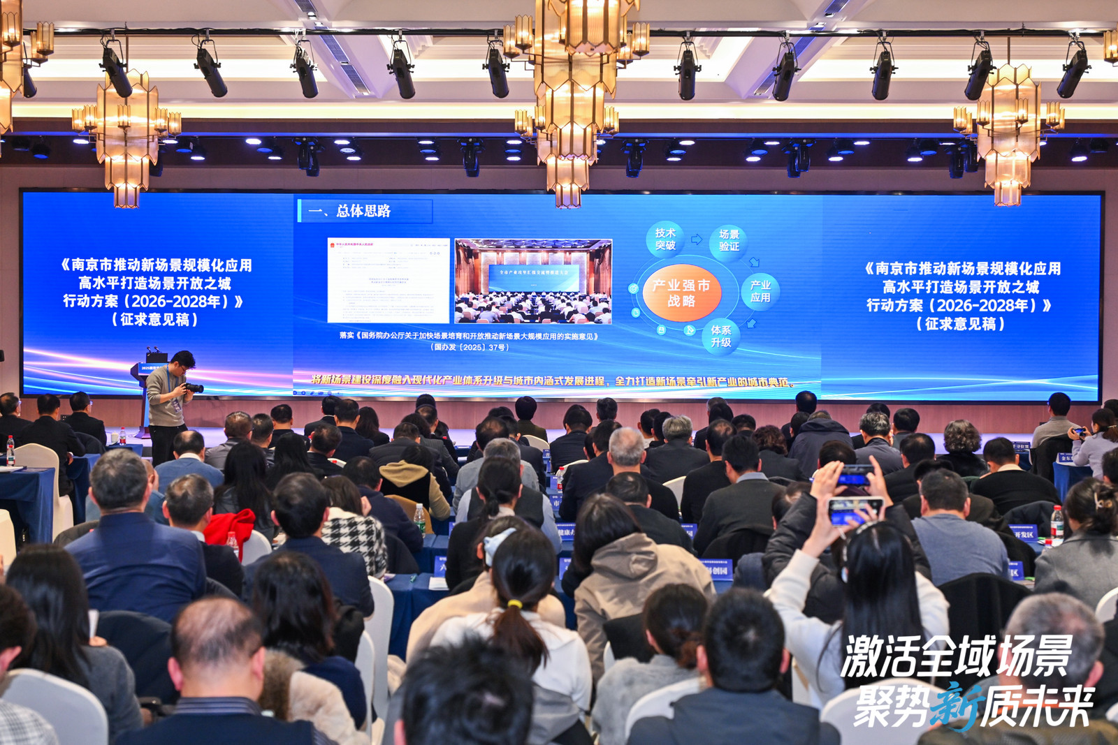 大会现场,南京市产业强市办发布《南京市推动新场景规模化应用 高水平打造场景开放之城行动方案(2026—2028年)》(征求意见稿)。方案明确了未来三年南京场景工作的战略蓝图:将深入实施全域场景创新工程,聚焦人工智能、智能电网、具身智能、工业软件、智能网联新能源汽车、低空经济、6G、脑机接口等重点产业,目标到 2028 年底,打造综合性重大场景10个,建设产业类、治理类、民生类行业领域集成式场景100个,推动1000个高价值小切口场景规模化应用,形成“技术突破—场景验证—产业应用—体系升级”的完整闭环,全力打造以新场景牵引新产业发展的城市典范。