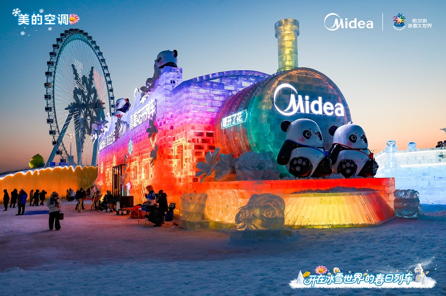 12月17日,哈尔滨冰雪大世界在万众期待中正式开园迎客。在一片银装素裹的梦幻世界里,一抹别样的盎然春意正悄然绽放——美的空调打造的“真暖花开列车”同步“发车”营业,迅速成为园区内极具人气的打卡新地标。
