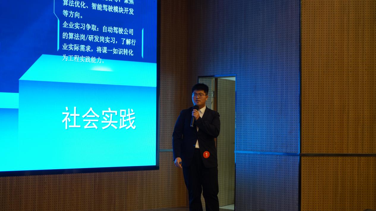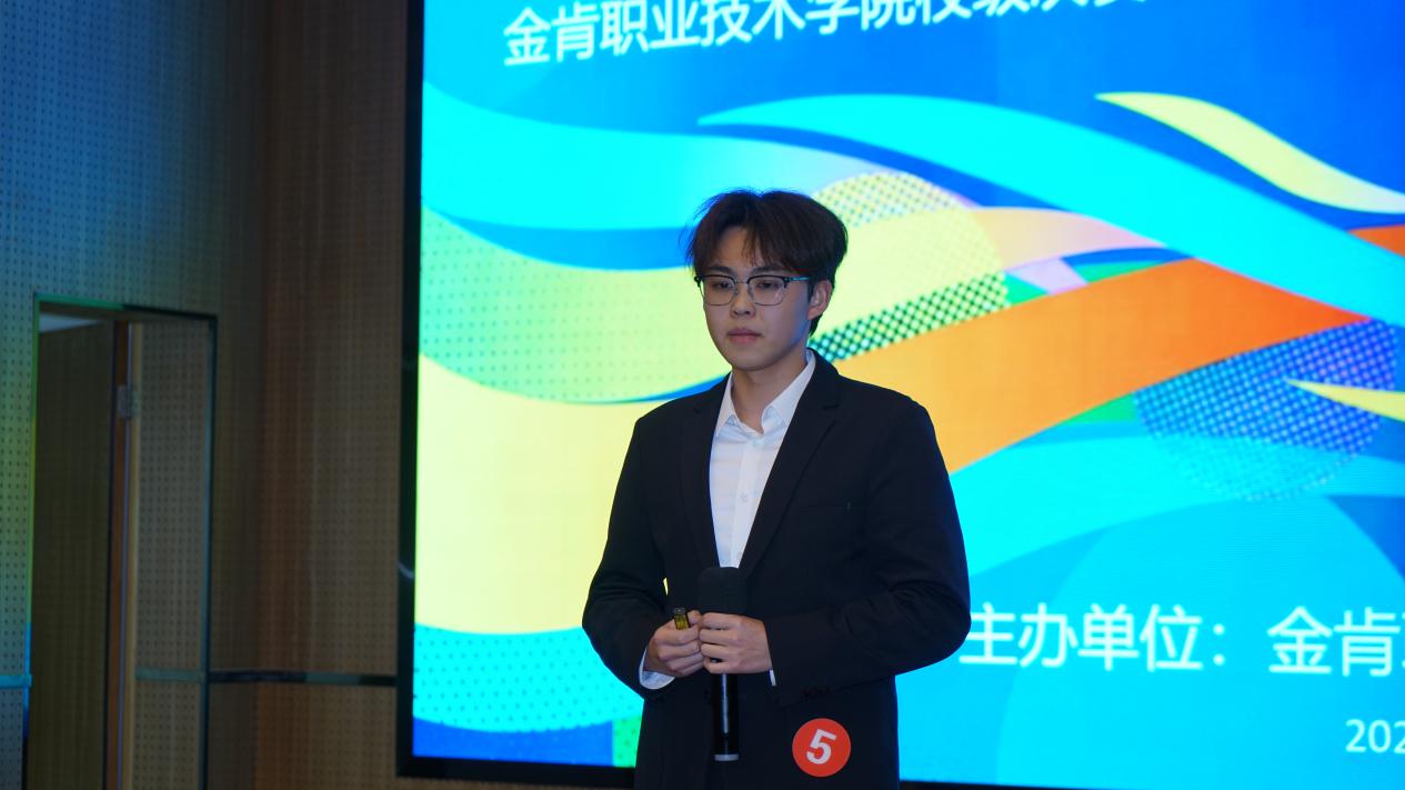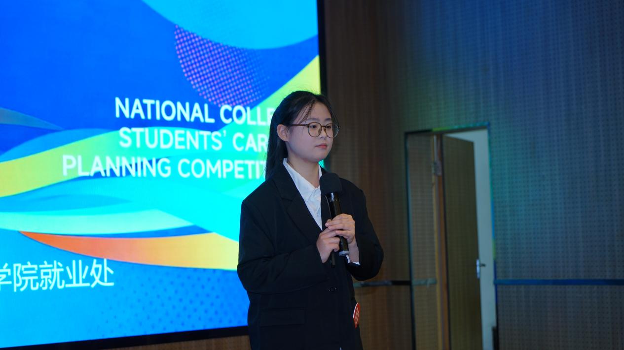 决赛现场,选手们按照赛前抽签确定的顺序依次登场,通过PPT展示的形式,全面阐述了个人职业规划。成长赛道的选手们聚焦学业发展与能力提升,勾勒出从校园到职场的成长路径;就业赛道的选手们结合行业趋势与自身优势,呈现了精准的职业定位与务实的求职策略。
