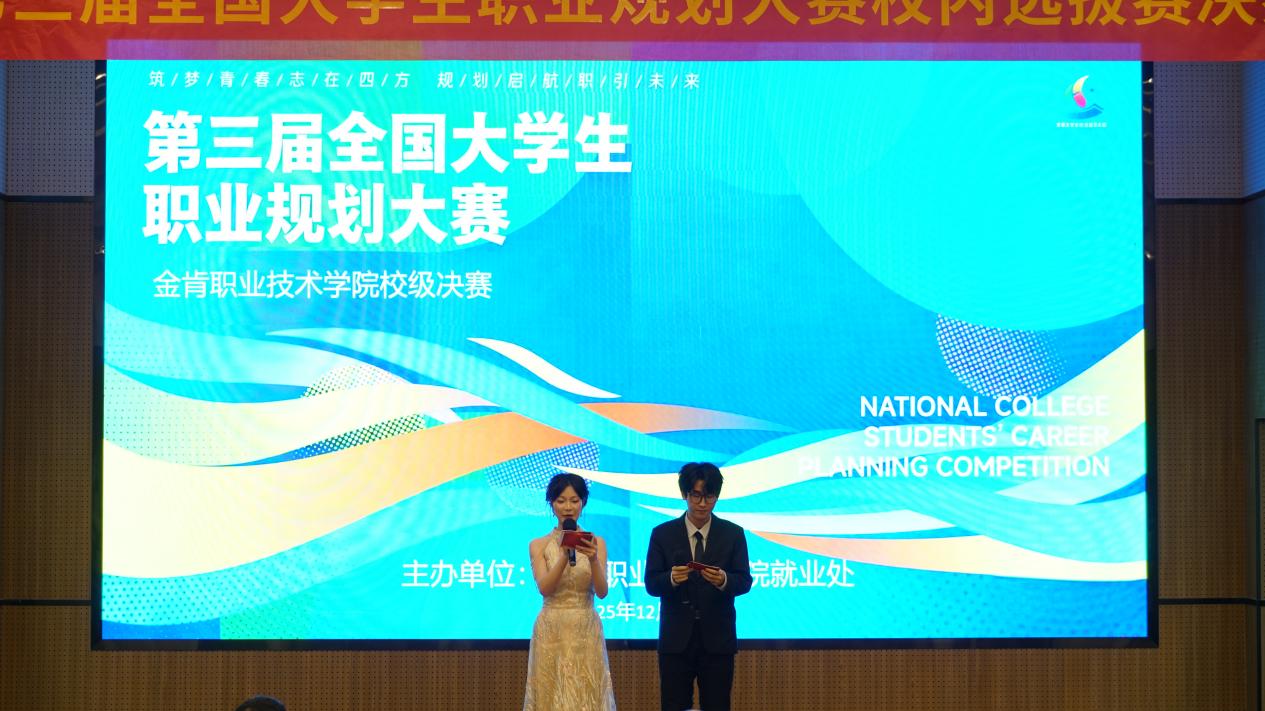 为深入贯彻落实党中央、国务院关于高校毕业生就业工作的决策部署,引导大学生树立正确的职业观、就业观和择业观,提升职业规划能力与就业竞争力,12月18日,金肯职业技术学院第三届全国大学生职业规划大赛校级决赛在东南楼报告厅成功举办。校领导、评委、各职能部门负责人、各二院党团总支书记、学工秘书、指导教师、全体辅导员,以及学生代表们齐聚现场,共同见证这场青春逐梦的职业盛会。