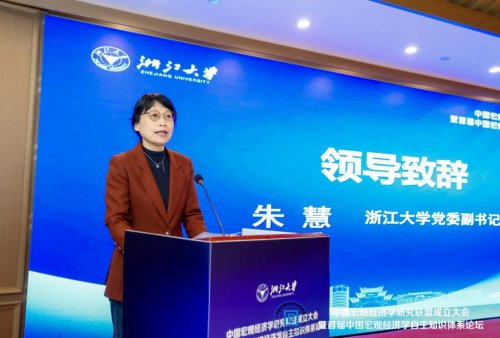 浙江大学党委副书记朱慧在开幕式致辞中指出,宏观经济学是观察经济运行、破解发展难题的重要工具,为国家制定经济政策、推动高质量发展提供关键支撑。她强调,当前正值“十五五”规划启动实施、发展新质生产力、推动高质量发展的关键时期,构建自主的宏观经济学知识体系意义重大。中国宏观经济学研究联盟的成立恰逢其时,是践行“把论文写在祖国大地上”、服务国家战略的具体行动,将为构建中国特色宏观经济学自主知识体系注入动力。她表示,浙江大学将依托浙江在民营经济、数字经济、共同富裕等方面的实践优势,推动宏观研究与地方发展紧密结合,切实履行联盟落户浙大的责任。