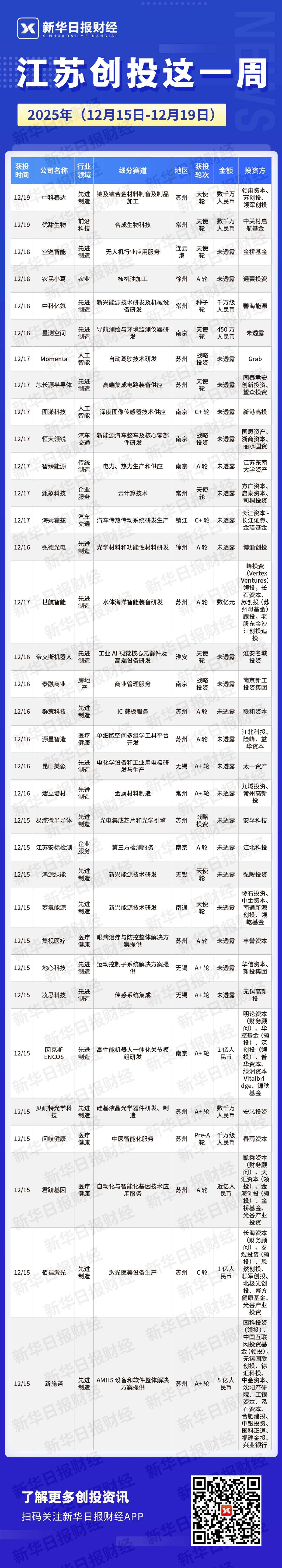 江苏本地方面,12月16日举行的南通投资大会发布1200亿元基金集群,包括国家服贸基金高端装备子基金、国投生物制造基金等“国家队”合作基金,以及省战新母基金合作基金(高端装备、未来产业、海洋经济三支)。南通今年新设基金超30只,构建“基金+产业+项目”协同格局。