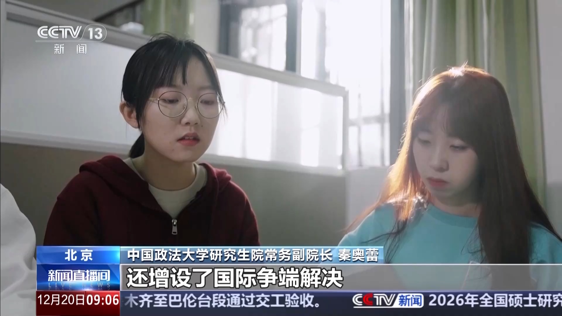中国政法大学研究生院常务副院长 秦奥蕾:2026年我们研究生新增的招生计划的80%都投放到了专业学位,这些新增的专业学位以服务国家战略与社会经济发展需求为目标,比如数字经济、知识产权、国际事务,我们在法律专业学位还增设了国际争端解决、文化法学和社会治理法学等。