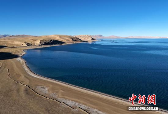 12月20日,航拍冬日色林错。色林错位于藏北那曲,是西藏第一大湖泊,湖面海拔4530米,是青藏高原形成过程中产生的一个构造湖。冬日,阳光照耀下,湖泊景色壮丽。图为色林错景色。(无人机照片)