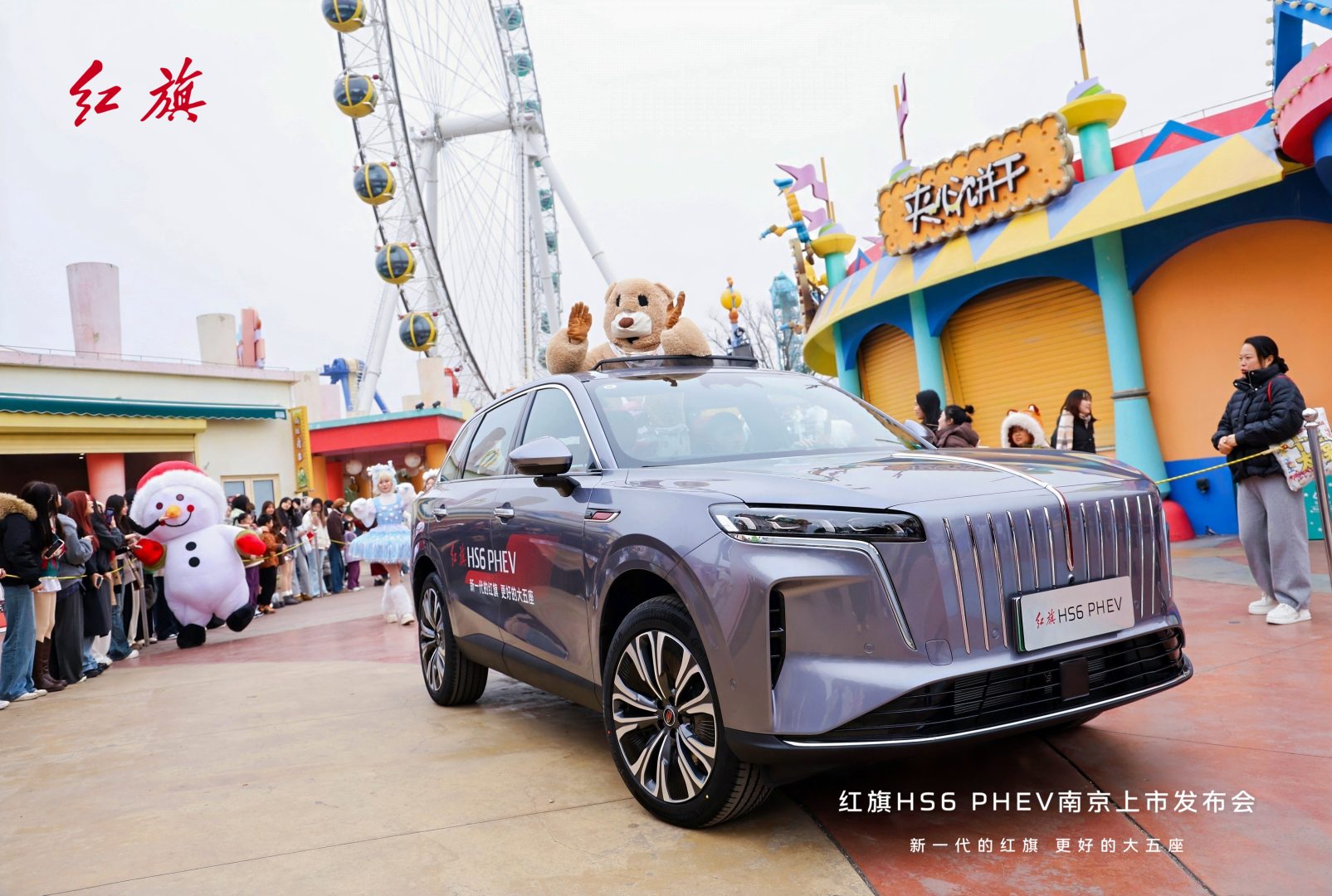 活动精准把握南京城市文化底蕴与家庭消费需求,在南京欢乐谷这一城市流量地标实现全方位品牌视觉占领。红旗HS6 PHEV领航的主题花车巡游搭配欢乐谷明星NPC,形成流动的品牌风景线,让品牌形象深度渗透泛人群。