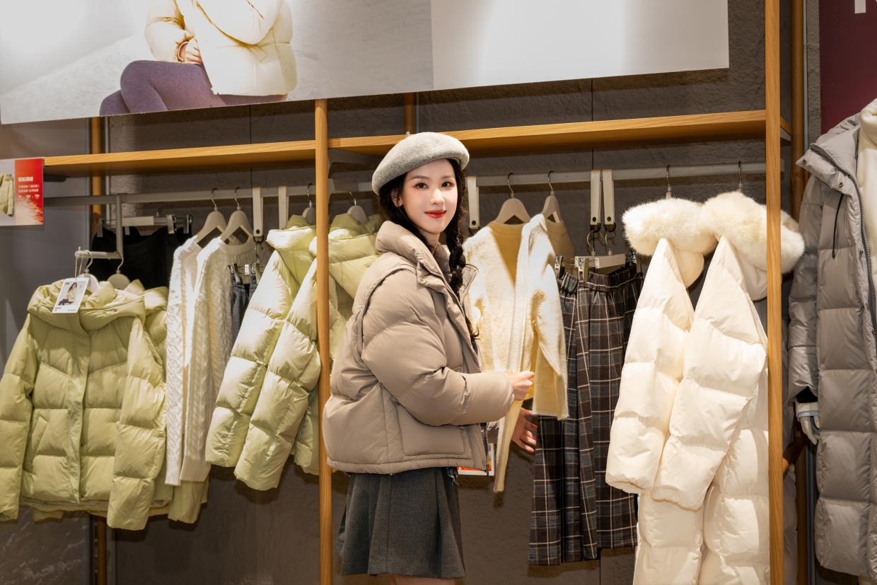 直播现场嘟嘟不仅贴心抽取粉丝来信,为冬日穿搭答疑解惑,展示了羽绒服在多样场景中的穿搭可能;更通过直观有趣的绒子实验,清晰地向观众呈现森马羽绒品质优势:90%绒子含量、700+蓬松度、1000+清洁度——三大维度全面升级,带来从容舒适和健康安心的冬日羽绒穿搭体验。
