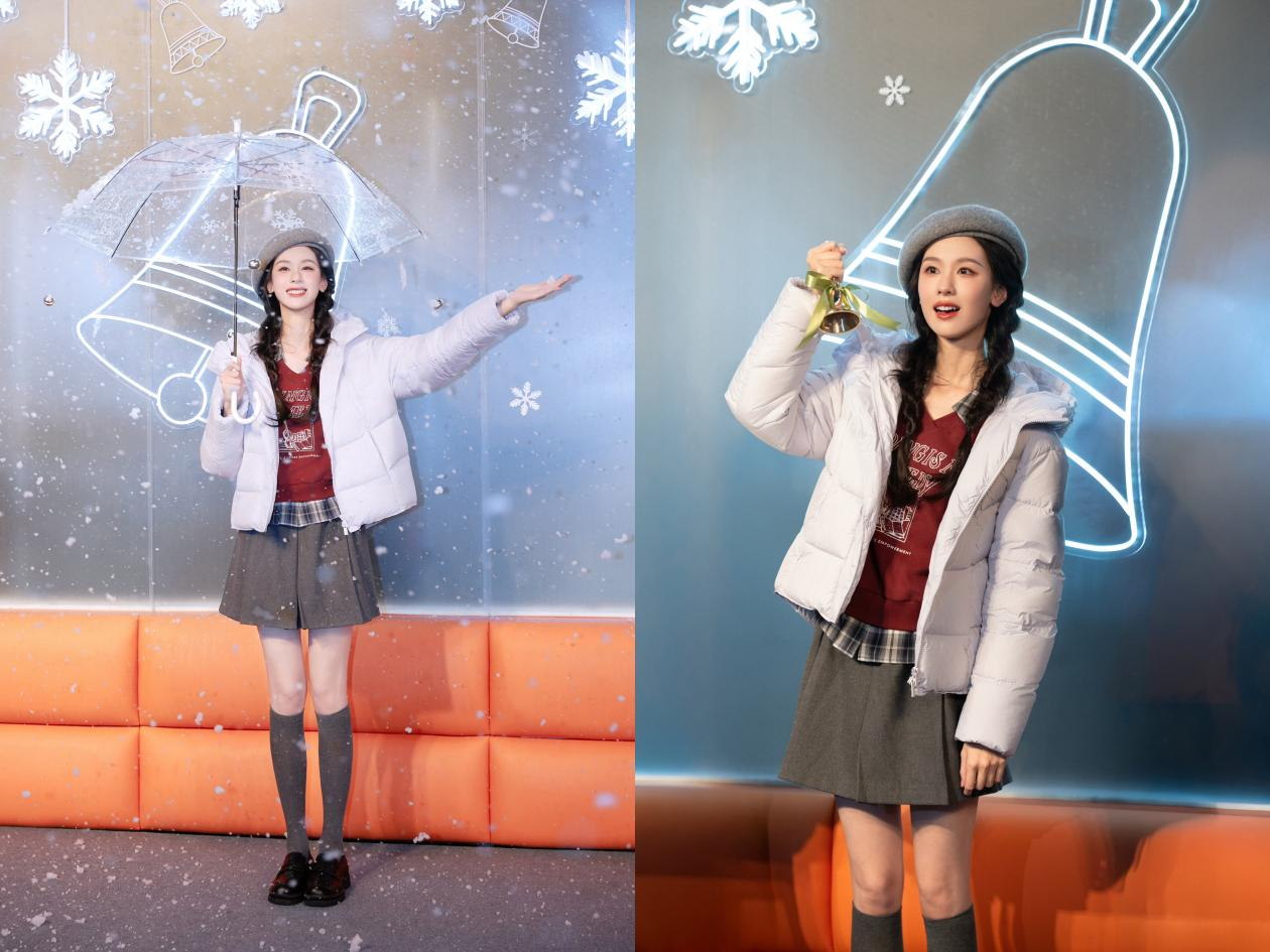 随着铃声响起,陈都灵暖冬快闪店正式开启,现场飘起浪漫“初雪”。而嘟嘟身着森马羽绒服的看雪造型,迅速在社交媒体上形成热议,吸引众多时尚博主模仿同款氛围感看雪穿搭。