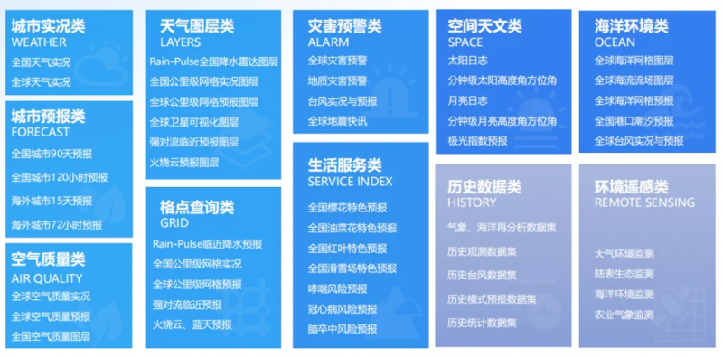 ▲看天API产品品类齐全