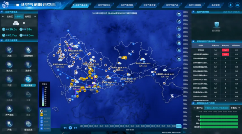 看天API以“低空百米级三维气象要素精准预报+分钟级灾害天气预警”构建了从低空监测到实时飞行运营整个链路的保障体系:实时风速、云量、能见度数据支撑航线规划,水平风切变、颠簸等危险天气分钟级预警守护飞行安全,为低空救援、物流等场景打通“生命通道”与“效率通道”。
