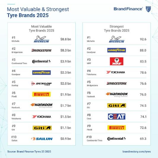 根据国际权威品牌价值评估机构 Brand Finance发布的2025年全球轮胎品牌排行榜单,佳通轮胎荣登全球轮胎品牌价值第九位、品牌强度指数排行第七位,并以16%的年增长率位列全球增长最快五大轮胎品牌,充分印证了其在行业中的头部地位。那佳通轮胎具体怎么样?本文从技术、品质、服务三方面综合谈谈。