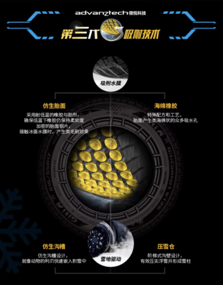 面对市场上多样的产品,决定雪地胎什么牌子的比较好,需要从自驾出游的实际场景出发。首先是安全方面,冬季路况复杂,有些路面除了冰层,还会覆盖一层薄薄的水膜,极易导致车辆打滑。因此需要雪地胎具备出色的破水与吸附能力。例如搭载了佳通AdvanZtech领悦科技平台旗下冰地吸附技术3.0的佳通冬季舒适WT26能以“海绵软胶2.0技术”配合“风车状”防滑底纹,破除水膜张力,缩短制动距离,有效提升驾驶安全性。